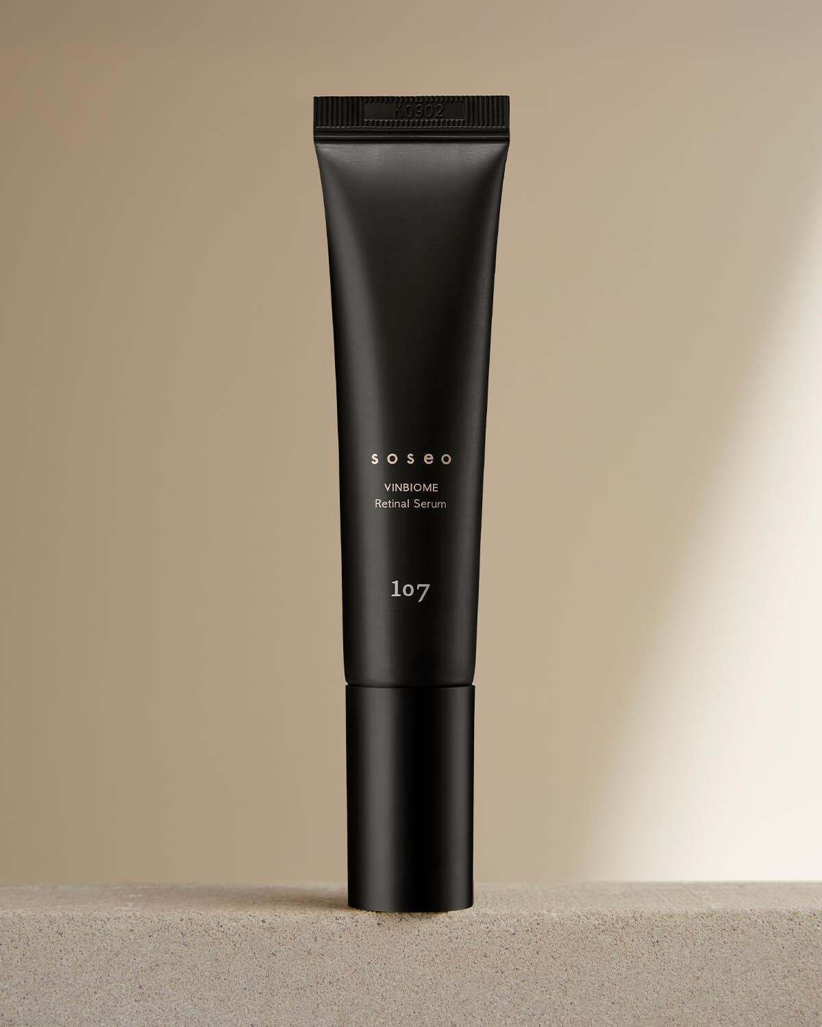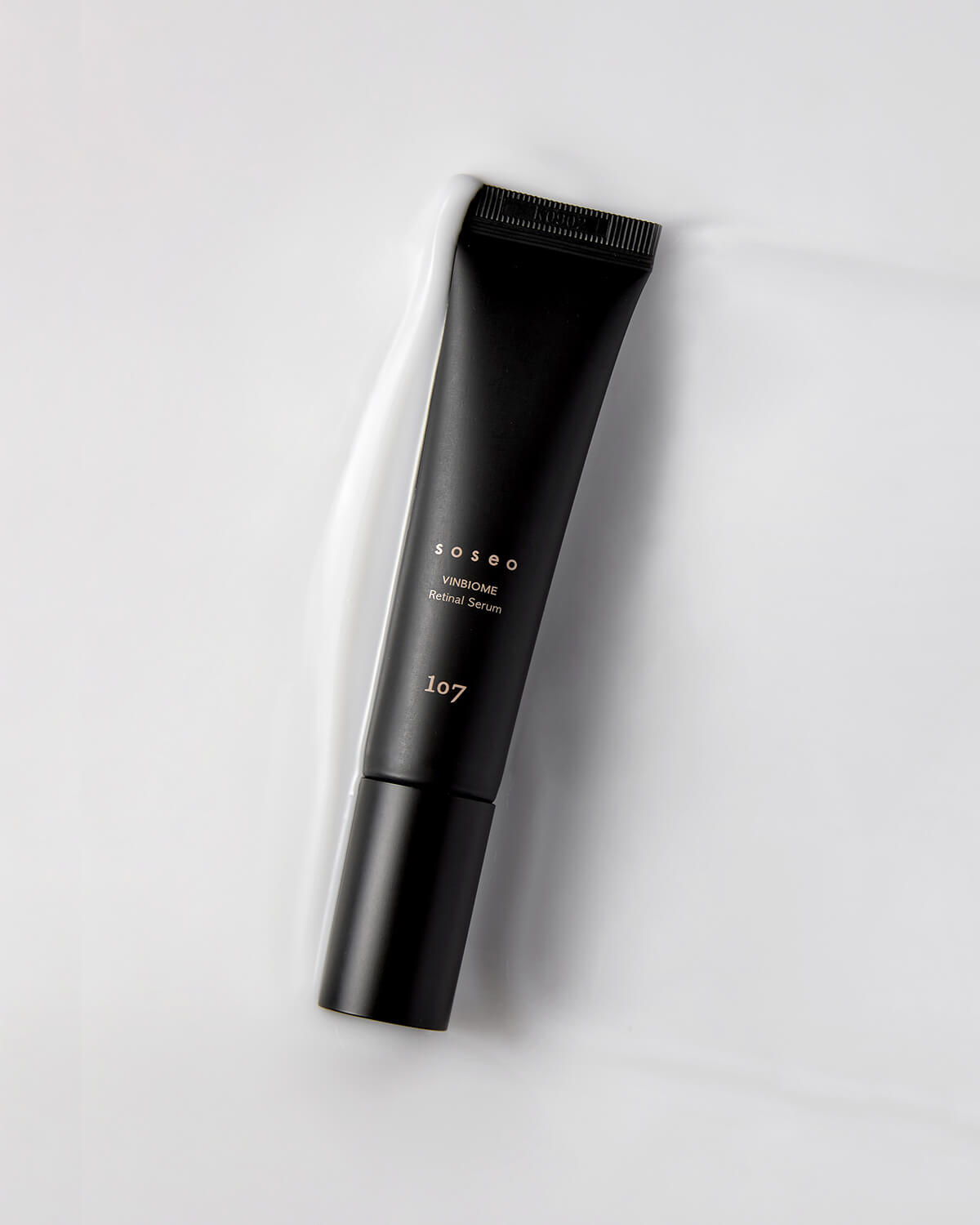 The 107 Soseo Vinbiome Retinal Serum is formulated with 0.1% liposome-encapsulated retinal, a highly effective form of Vitamin A, to visibly smooth skin and refine texture with minimal irritation. It also contains Vinbiome Complex, a proprietary blend of fermented ginseng, wheat, and pine bark extracts, enriched with 10-year aged black vinegar, probiotics, and prebiotics to help strengthen the skin barrier and improve hydration.