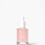 Anua's Peach 70% Niacinamide Serum sinks deep within the skin to hydrate, while combining the brightening powers of alpha-arbutin and niacinamide to reduce the appearance of hyperpigmentation, balance oil production, and even out skin tone. The subtle pink hue comes from vitamin B12. Vegan and crulety-free.