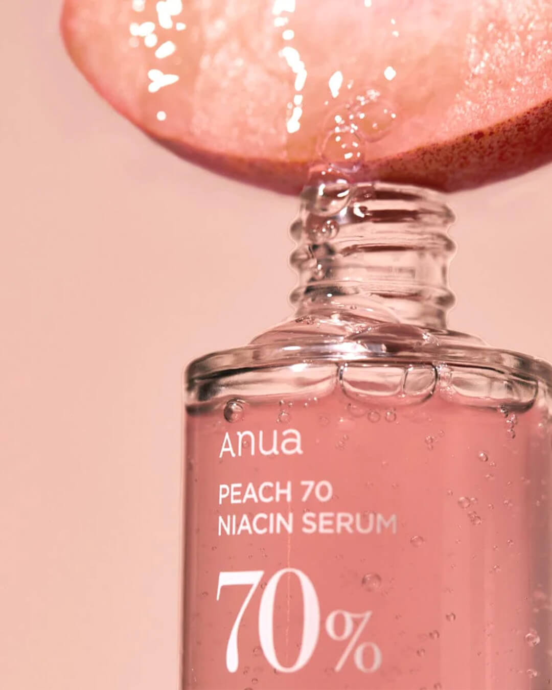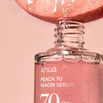Hyperpigmentation, uneven tone or rough texture? Enter: Anua Peach 70% Niacinamide Serum. Containing 70% peach extract and 5% niacinamide, this serum helps even out skin tone for a glowing complexion.