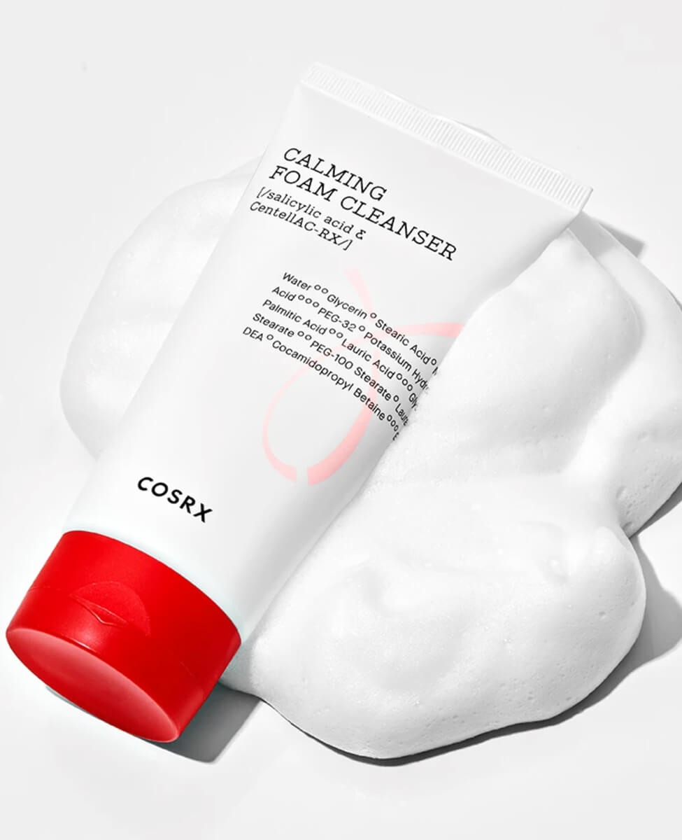 The AC Calming Foam Cleanser by Cosrx is a perfect daily cleanser that not only combats breakouts but also heals damaged skin. This creamy foam cleanser is formulated with Cosrx’s unique CentellAC-Rx Complex that optimizes the natural regenerating benefits of centella asiatica, including soothing irritation, strengthening skin’s barrier and maintaining balanced skin. Salicylic acid gently removes dead skin cells and excess oil to keep skin blemish-free without over-drying.