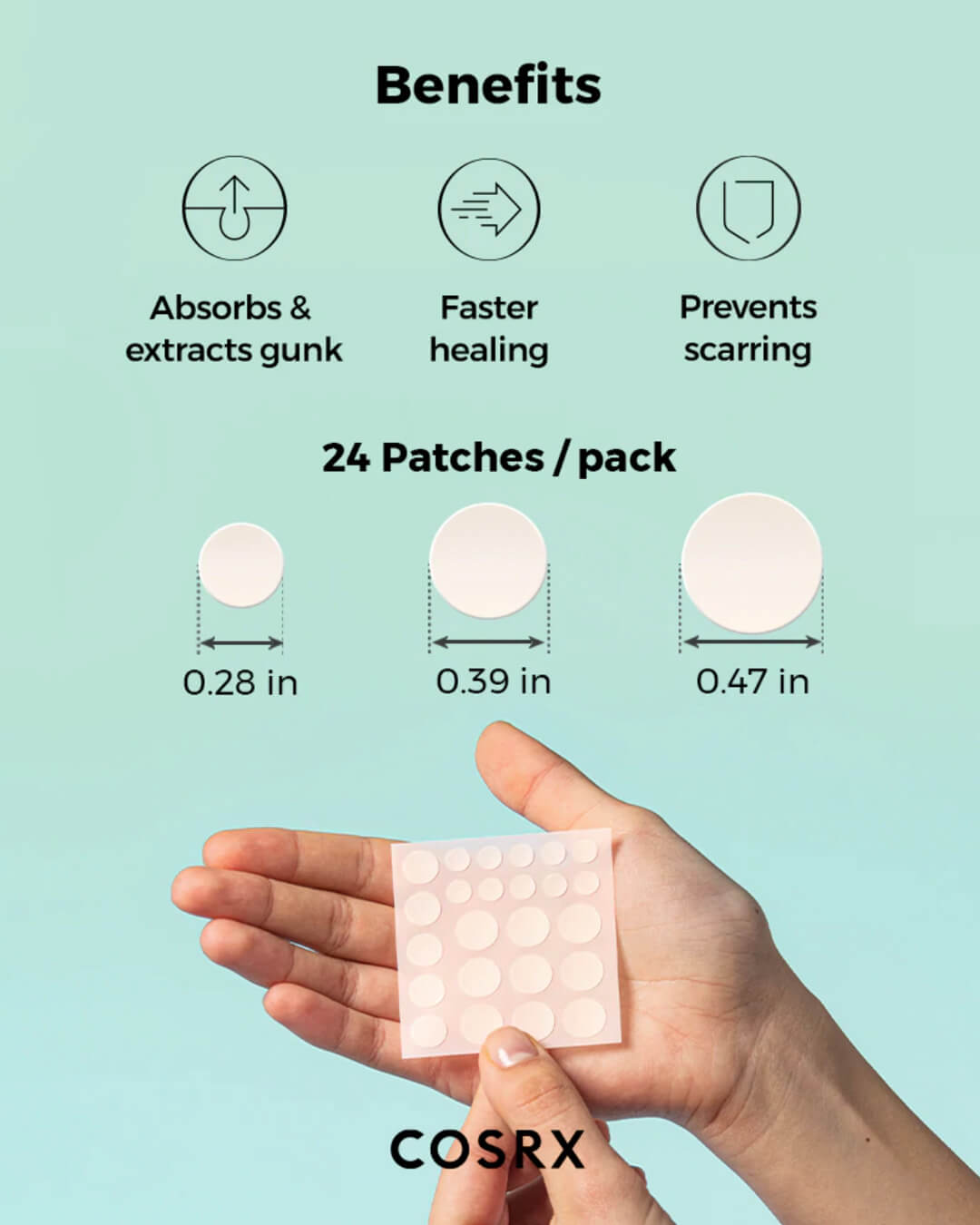 Cleanse and completely dry the troubled spot(s). Remove the clear cover film, gently peel off one patch then carefully cover desired spot(s). Wear up to 8 hours.