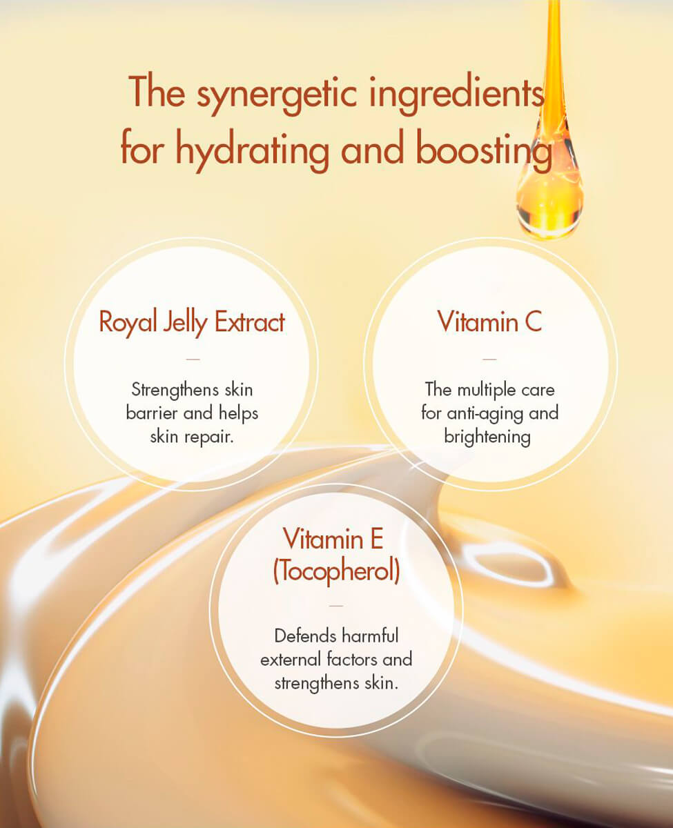 A lightweight, serum-like eye cream that immediately revitalizes and nourishes dehydrated, tired and sensitive skin around the eye. Propolis and Royal Jelly extracts hydrate and repair for a brighter, glowing complexion. Antioxidant-rich sea buckthorn fruit extract, Vitamin C and E, plus Collagen all work together to protect and strengthen the moisture barrier. It comes with a golden massage applicator that enhances the cooling, refreshing effect.