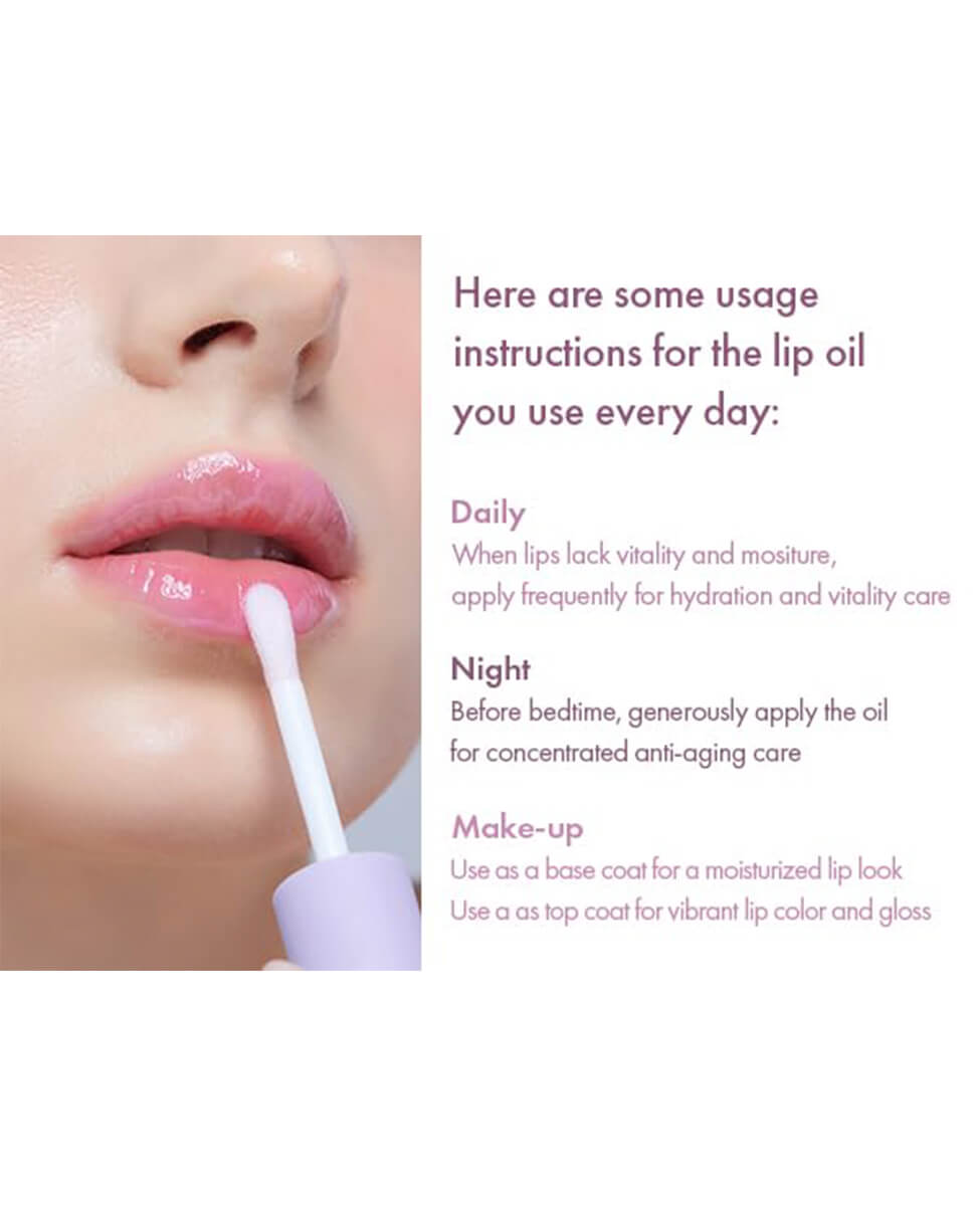 Apply daily for hydration and vitality care. Can also be used before bedtime as an overnight lip mask. Great under makeup as a base coat, or over makeup as a vibrant top coat.