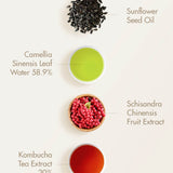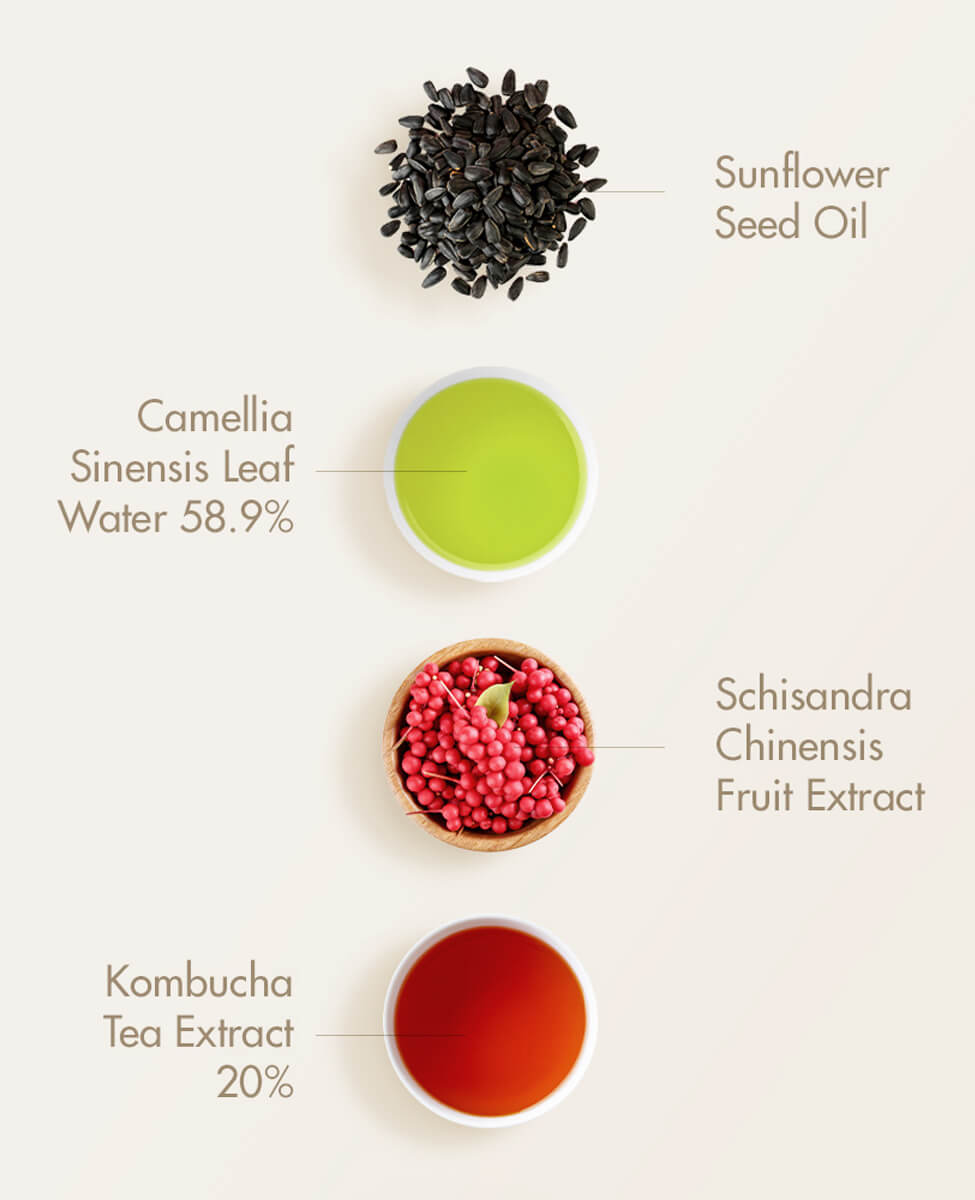 Dr. Ceuracle's ingenious multitasker that absorbs like a toner and functions as a cream-essence hybrid, the Vegan Kombucha Tea Essence is perfect for all skin types. Combining the fortifying abilities of kombucha tea extract with plant botanicals and nourishing seed oil, this vegan formula is made to create a glowing, vibrant complexion, especially when skin feels overly tight or dry, or oily on the surface yet dehydrated. Rich in probiotics and Vitamin B, kombucha extract helps to strengthen the skin and prevent the damaging effects of oxidation while balancing hydration. Green tea and Omija fruit extract, both powerful antioxidants, further hydrate and protect. Sunflower seed oil additionally nourishes and aids in a supple glow.