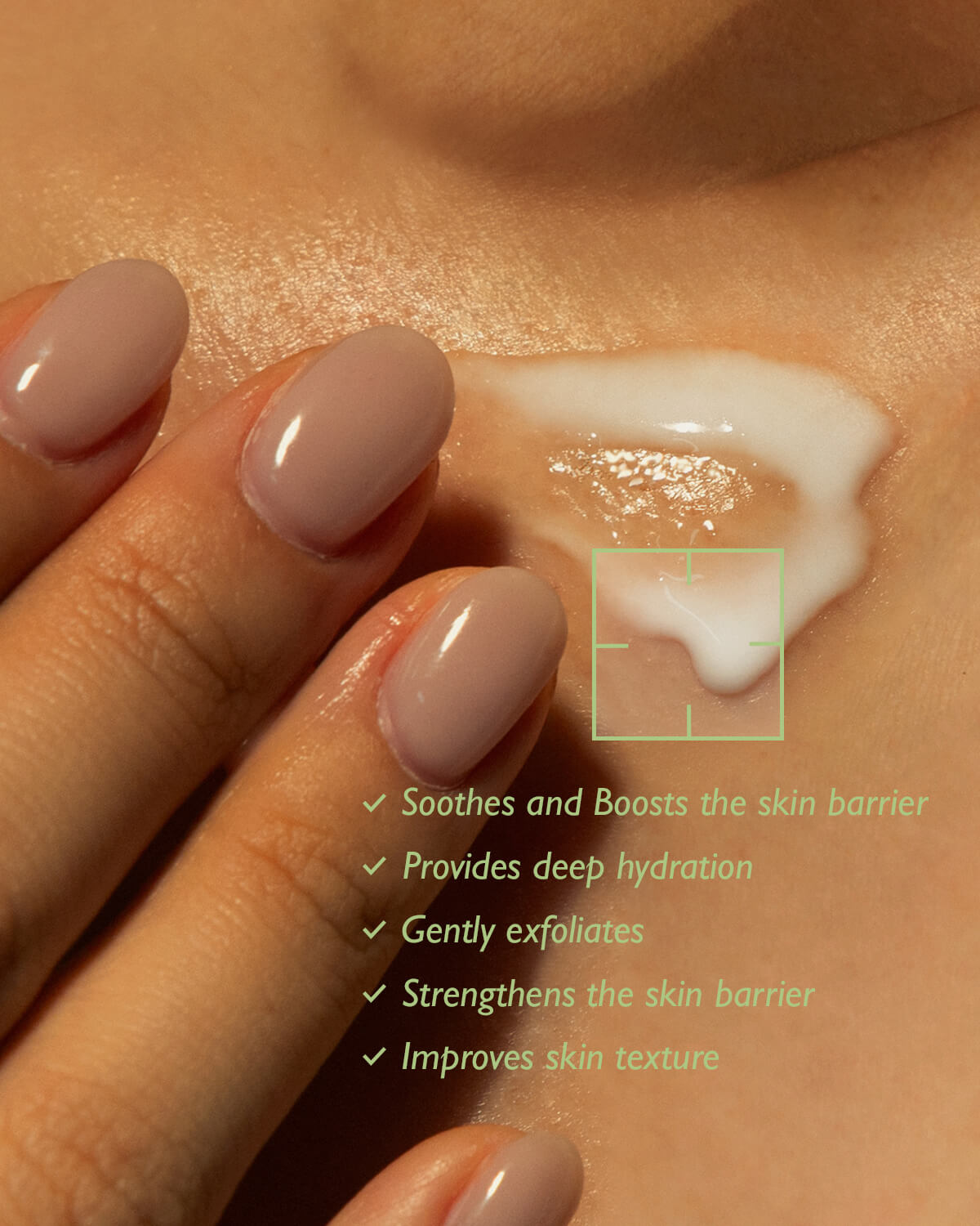 A blend of nourishing oils—including Sweet Almond, Tamanu, and sugarcane-derived Squalane—helps strengthen the skin barrier and lock in moisture. Despite its rich ingredient list, the milky, lightweight texture absorbs quickly without feeling greasy, leaving skin soft, refreshed, and noticeably smoother.