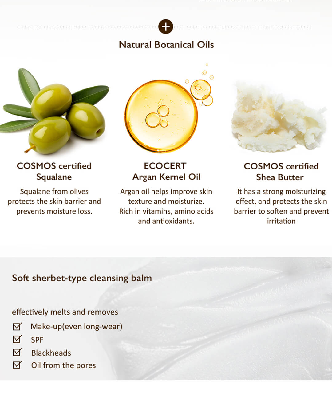 Texture: Sorbet-like balm -> Silky oil -> Milky
