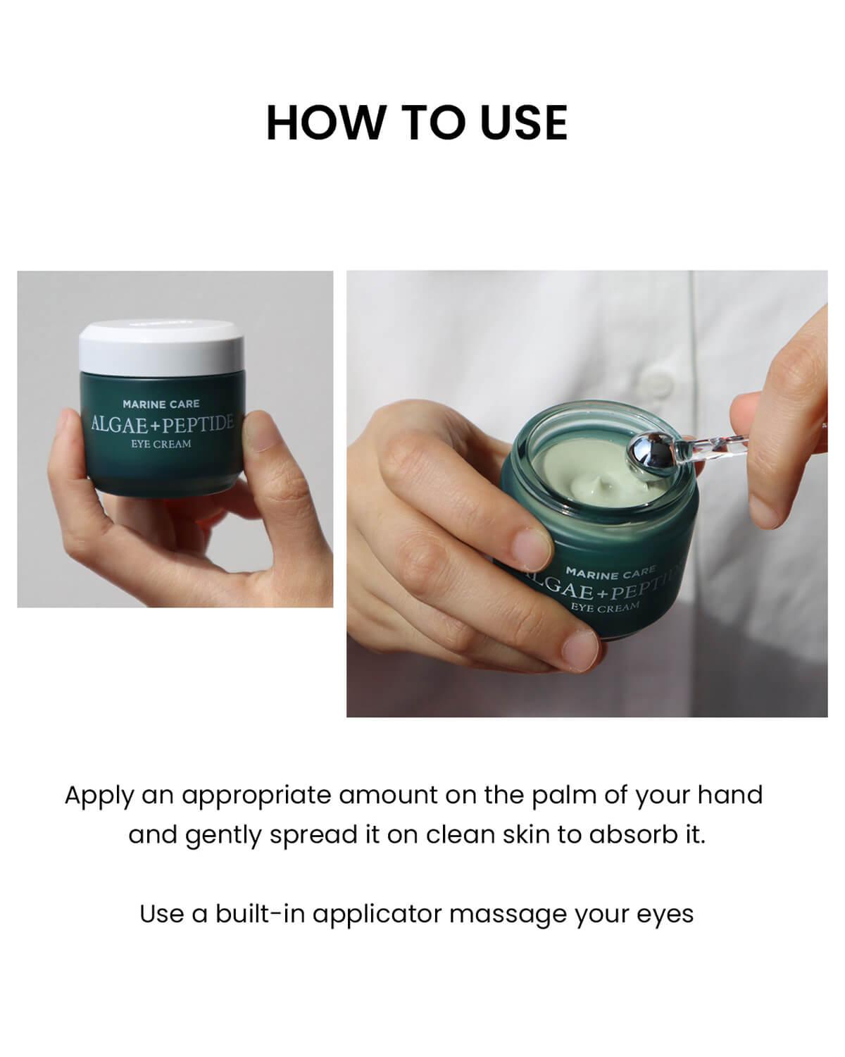 Apply to the eye area and massage with included massager.