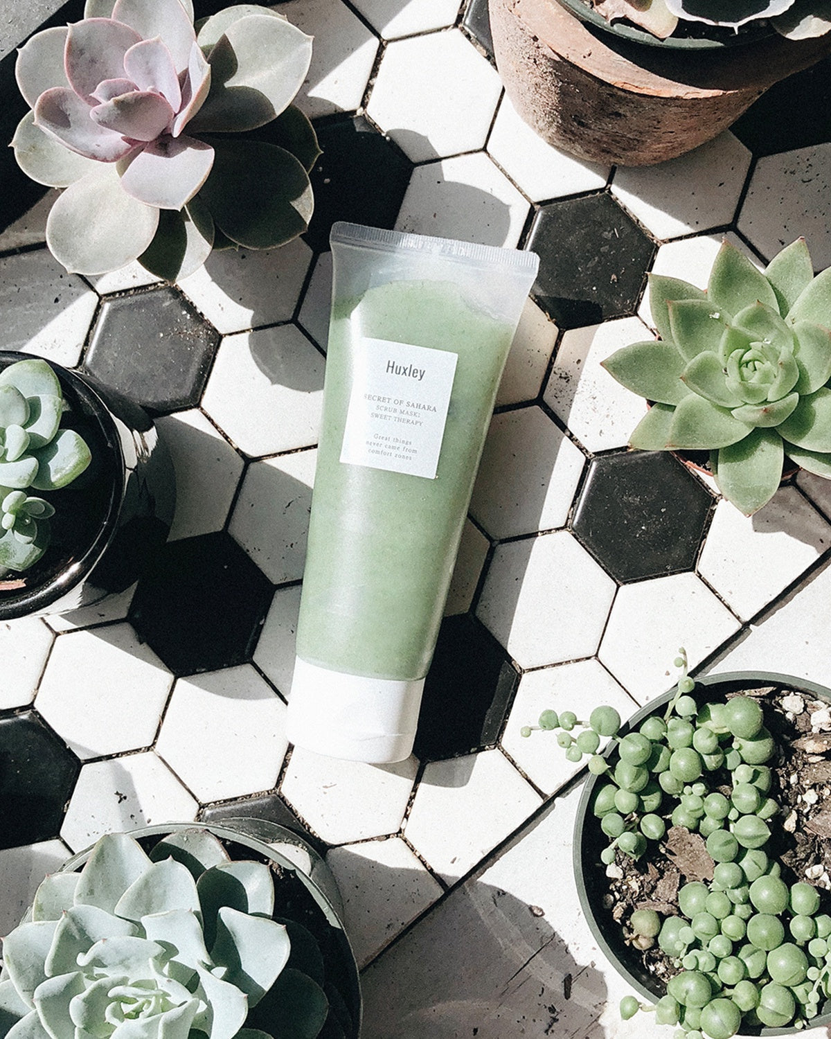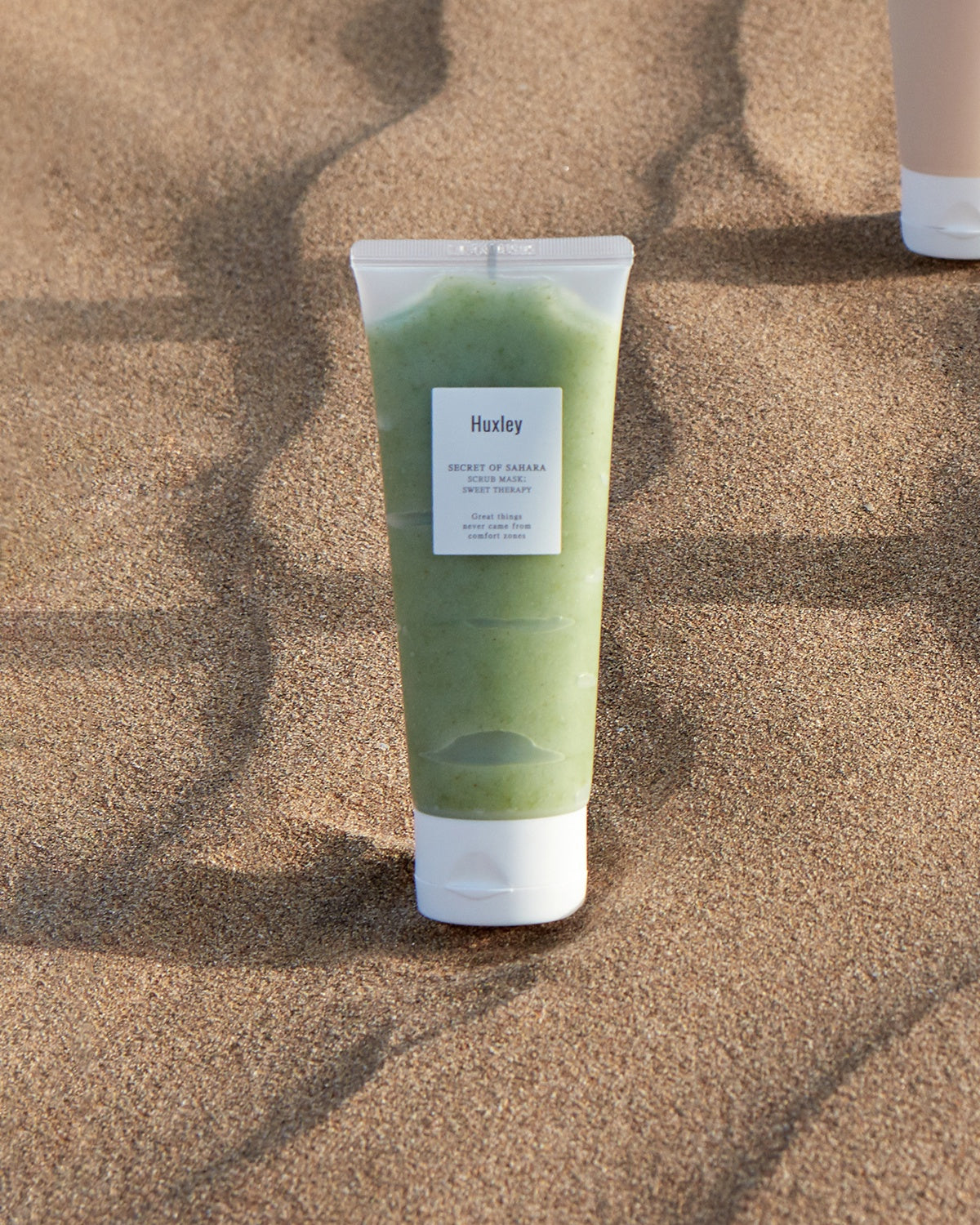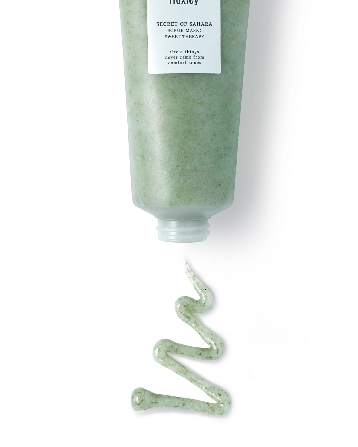 A purifying scrub mask made with naturally derived ingredients, Huxley Sweet Therapy Scrub Mask easily sloughs off impurities without drying out skin. Packed with Sahara’s prickly pear cactus extract, which is full of skin-benefiting antioxidants, vitamin E and linoleic acid, Mask warms up on skin during application, creating a gentle heat that reduces swelling and helps draw out impurities. Sucrose and walnut shell powder aid the removal of dead skin cells and other impurities while luffa helps seal in moisture. Great for all skin types, especially those concerned with excess sebum production and clogged pores.