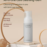 Hyggee All-In-One Care Cleansing Foam provides a luxurious, irritation-free cleansing experience with its ultra-fine bubble mousse formula. The soft, dense foam deeply cleanses pores without the need for harsh rubbing, minimizing friction and irritation. Birch sap, rich in minerals and amino acids, hydrates and nourishes the skin while preventing post-cleansing dryness. White asparagus extract helps purify and refresh, while probiotics support a healthy skin barrier by delivering essential nutrients and forming a protective moisture film.