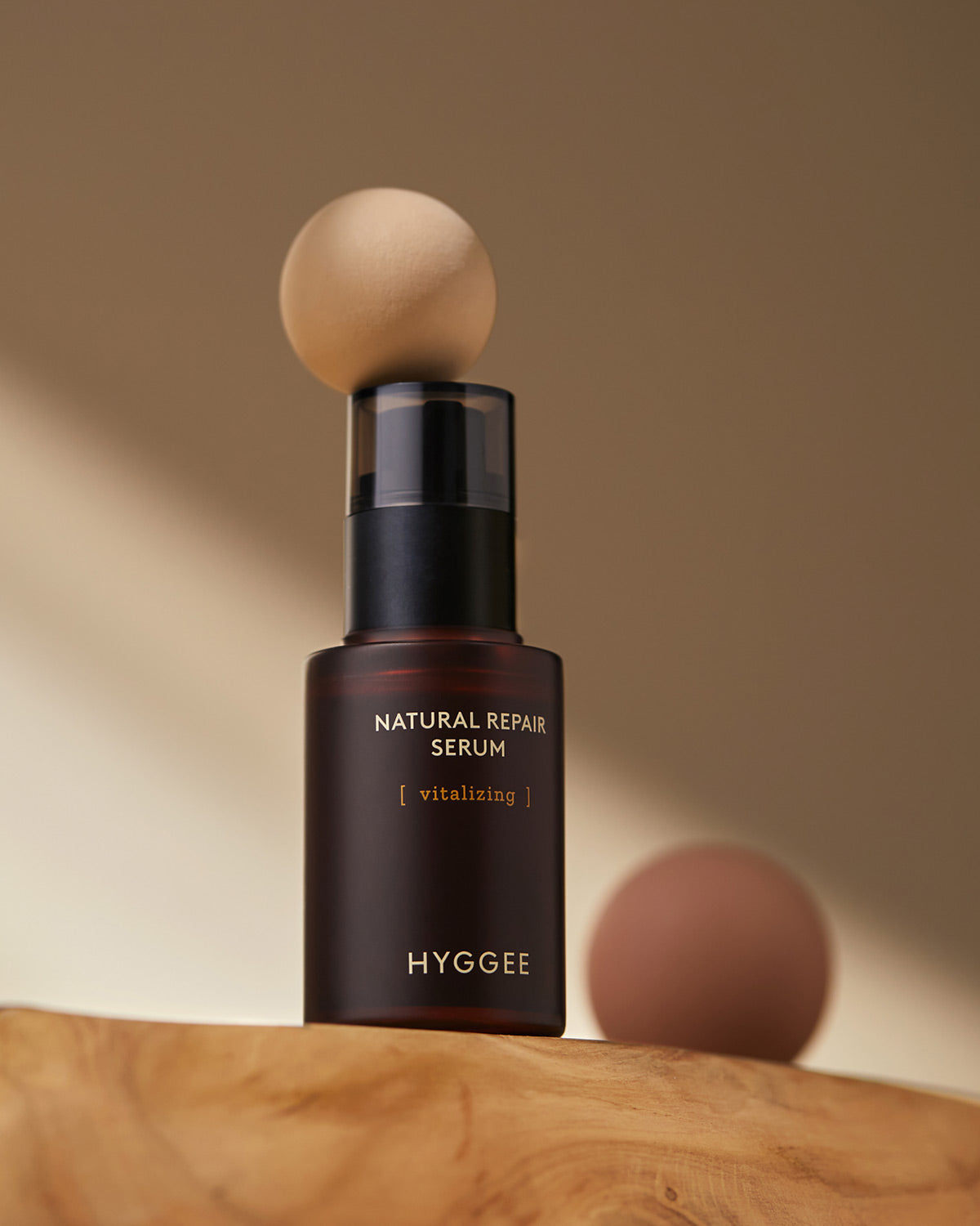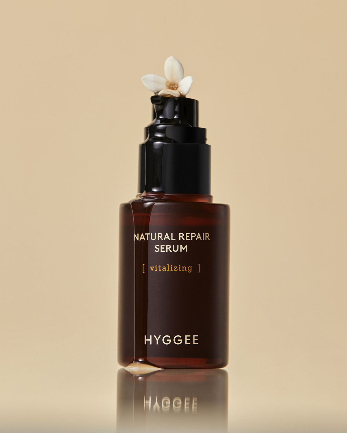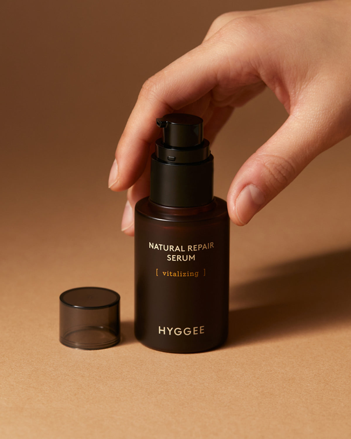Hyggee Natural Repair Serum is a highly moisturizing and renewing treatment serum infused with 66.7% Panax Ginseng Extract to restore skin vitality. Enriched with 10 root plant extracts and a soothing patented complex, it replenishes moisture and strengthens the skin barrier for a radiant complexion.