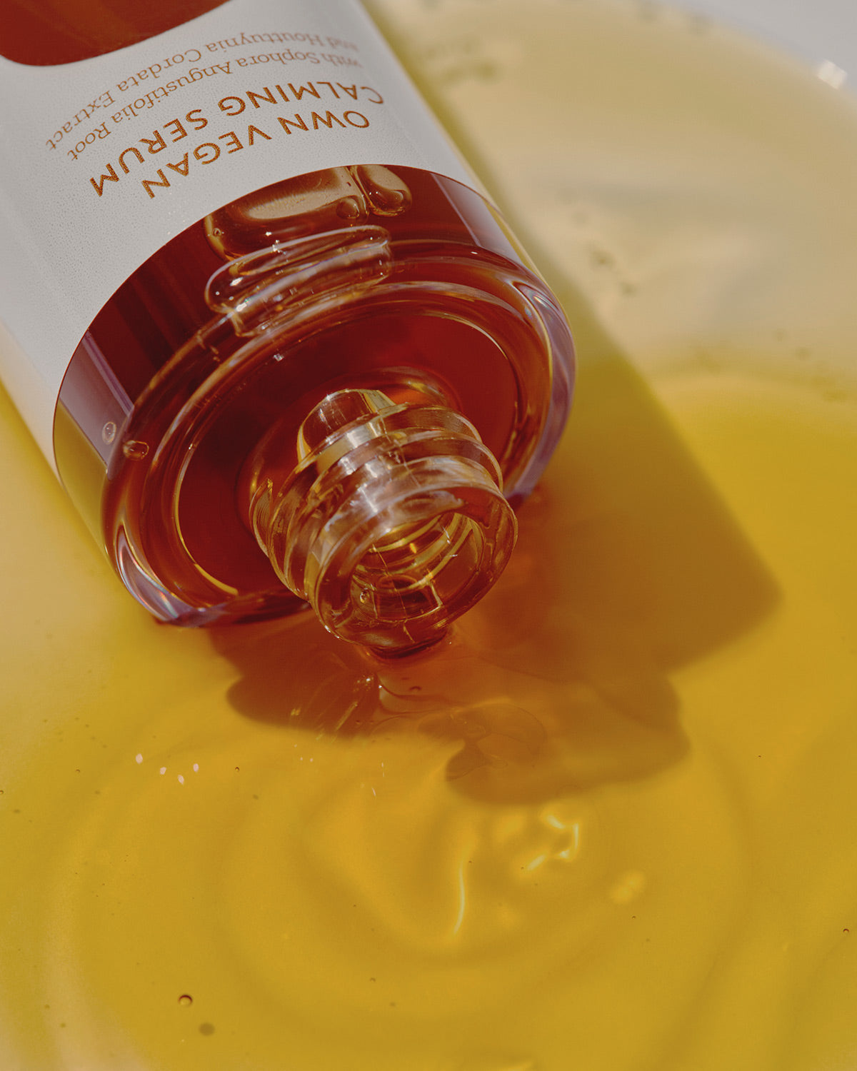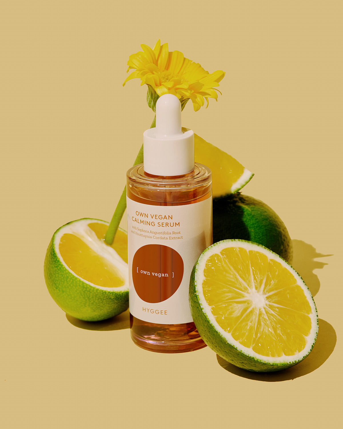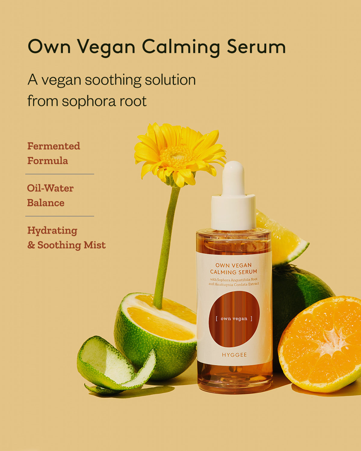 The Hyggee Own Vegan Calming Serum is enriched with 203,700ppm of Jeju shrubby sophora extract and houttuynia cordata extract to provide an instant soothing effect.