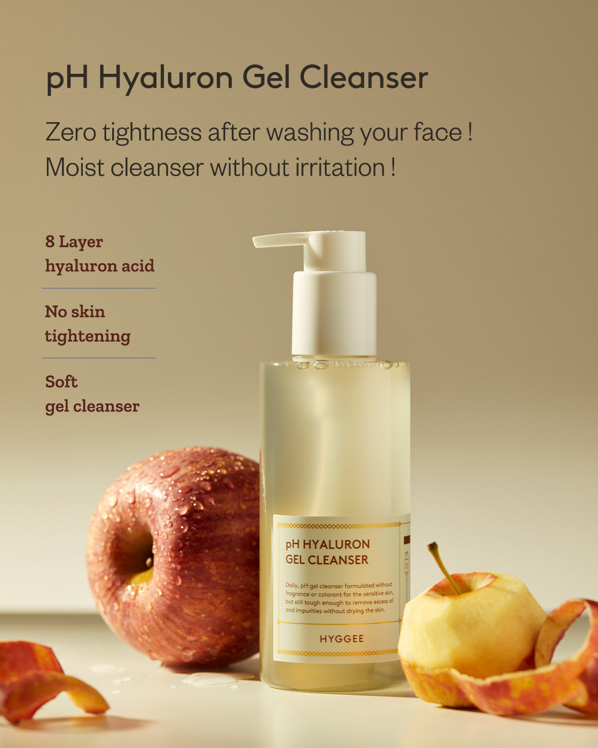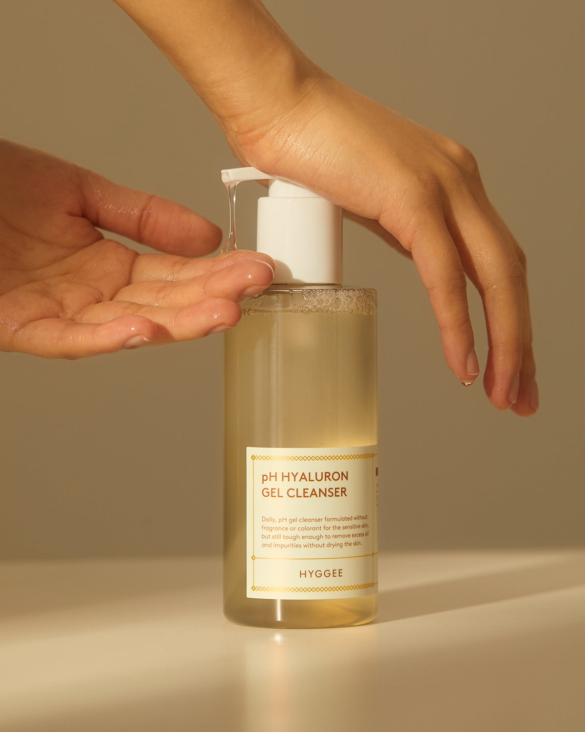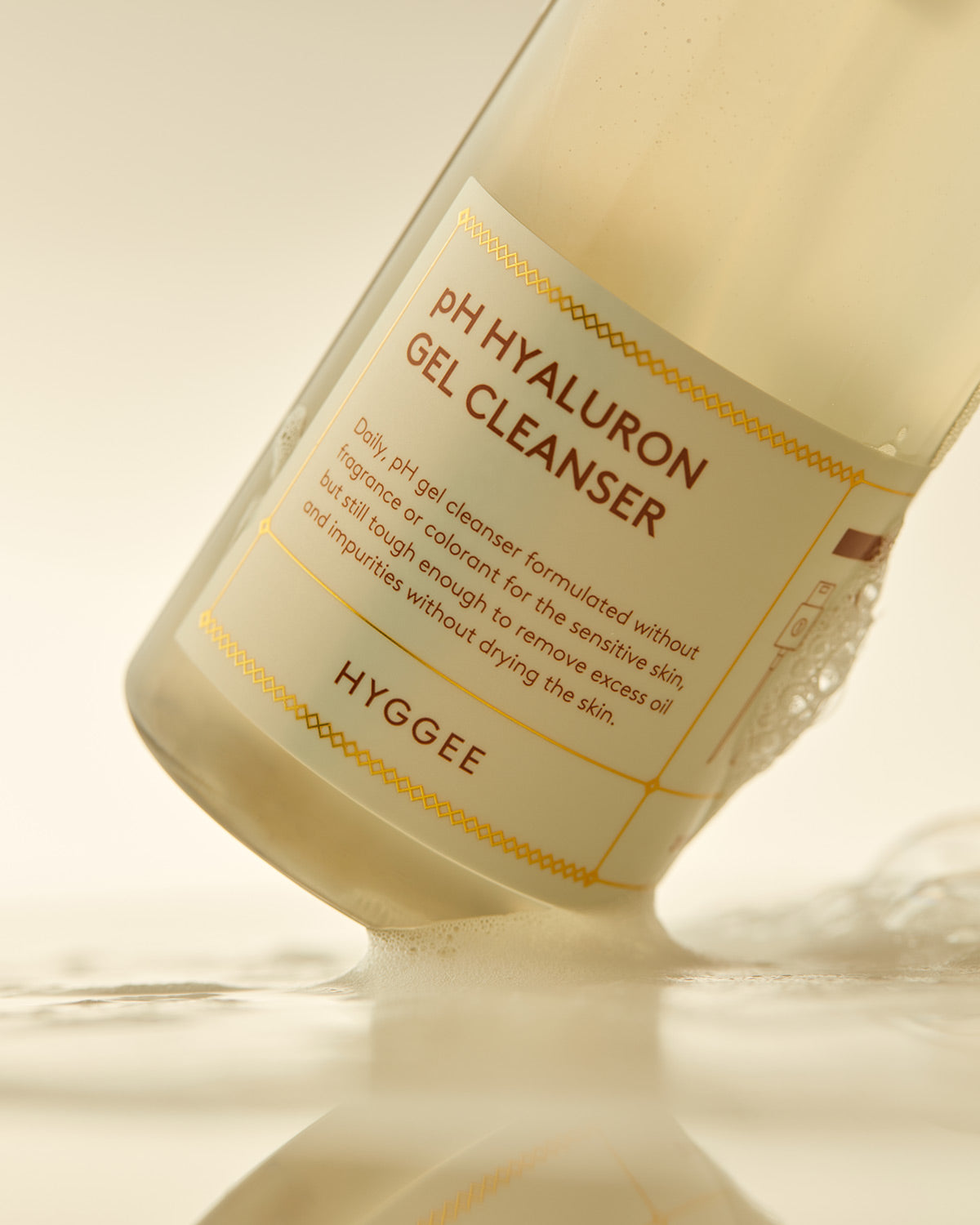 Hyggee pH Hyaluron Gel Cleanser is a moisturizing, low pH cleanser infused with 8 layers of hyaluronic acid to deeply hydrate while effectively removing impurities. Its natural surfactants and plant-based oils ensure a soothing cleanse without irritation or dryness.