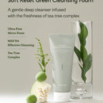 Hyggee Soft Reset Green Cleansing Foam is a mild, ultra-micro foam cleanser that deeply purifies while soothing and hydrating the skin. Formulated with green superfood extracts and tea tree complex, it provides a refreshing and irritation-free cleansing experience.