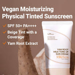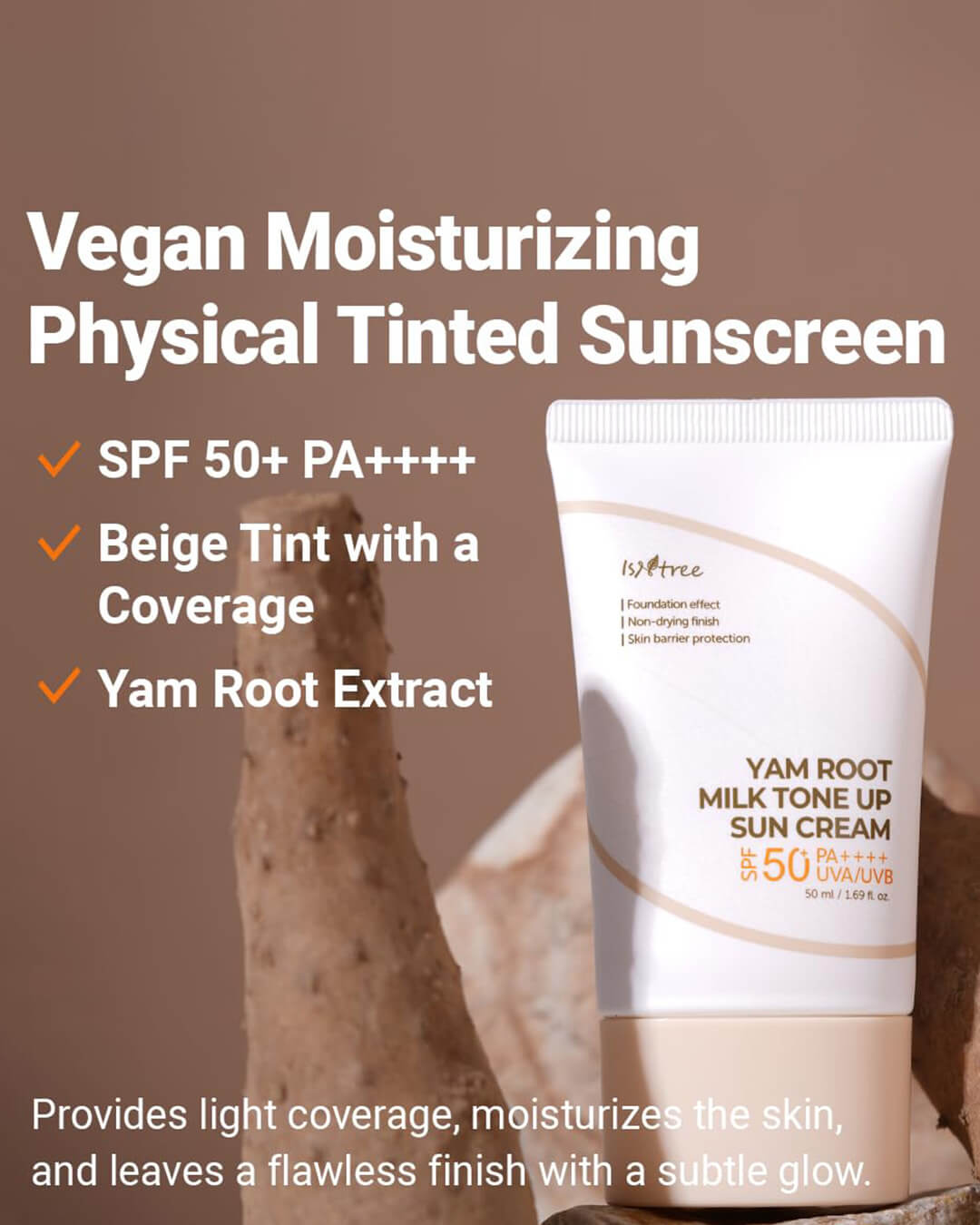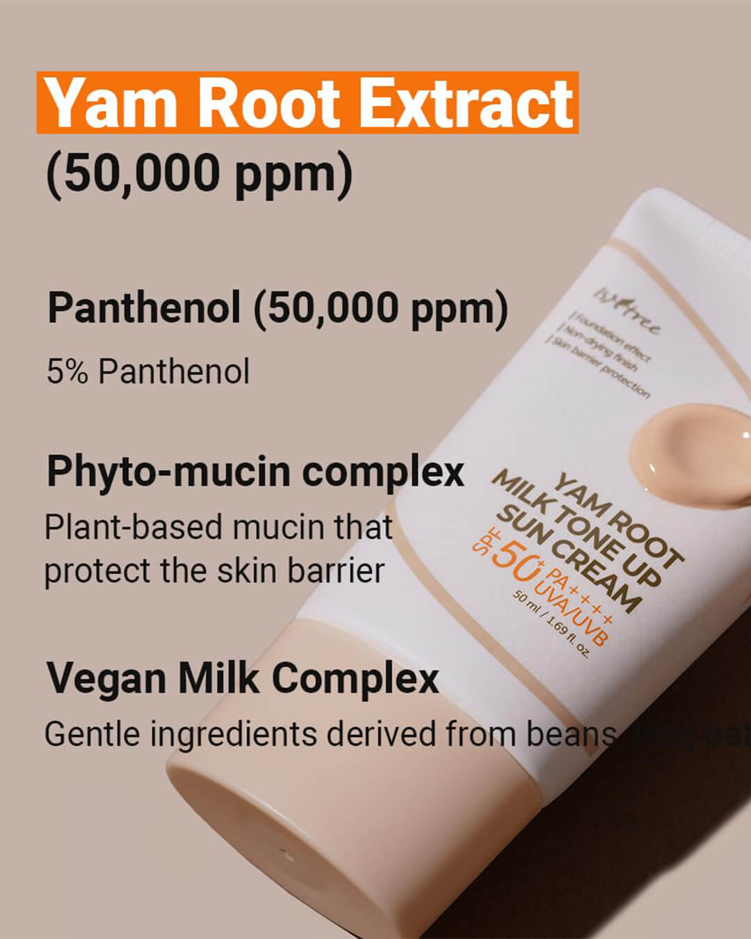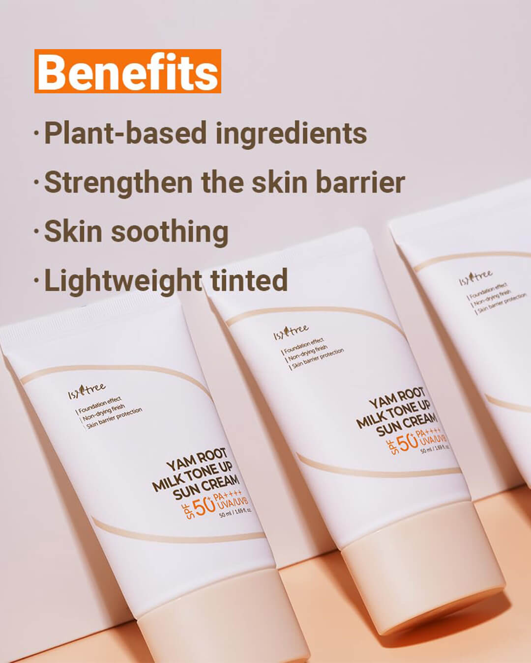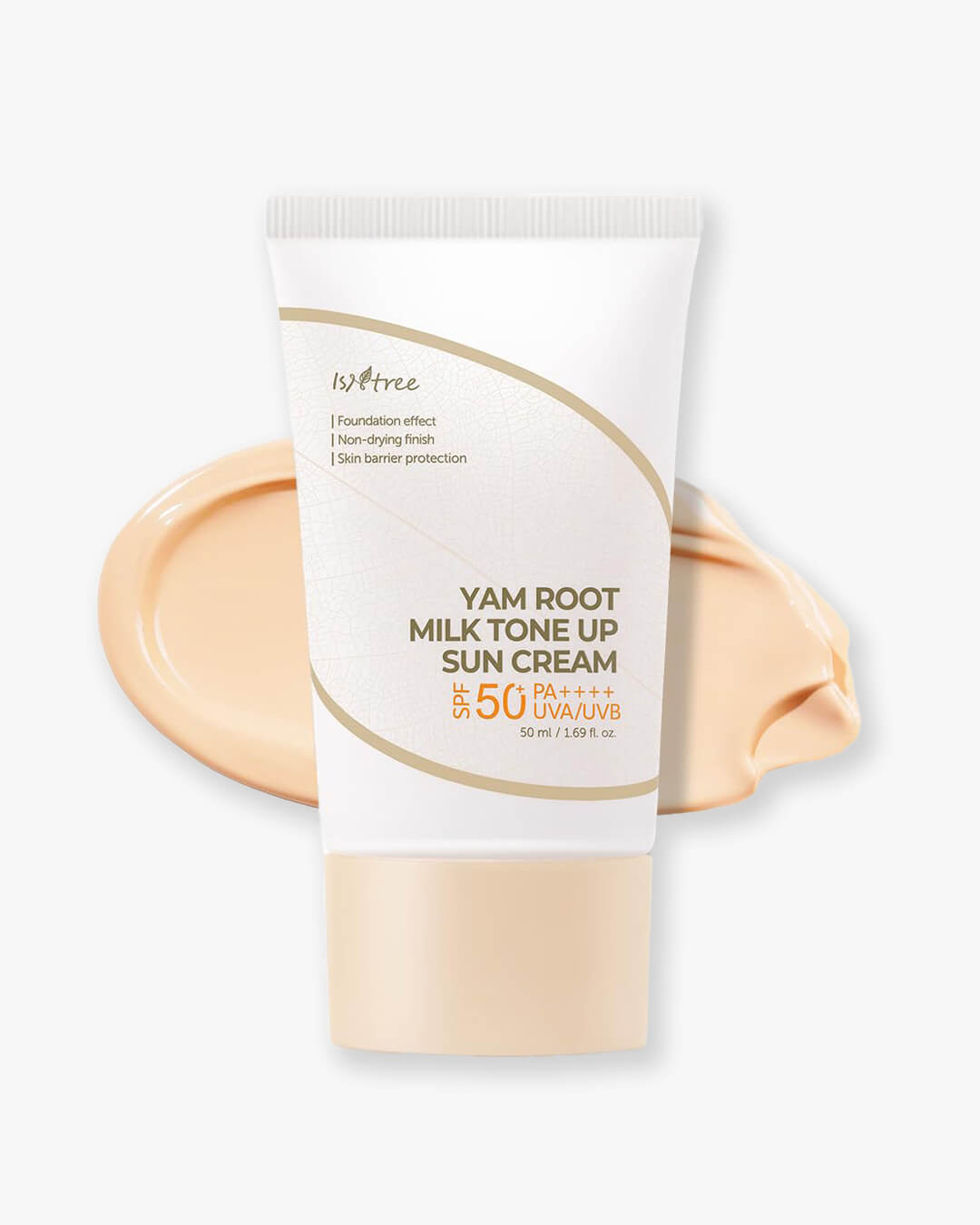 A broad spectrum sunscreen and makeup in one. The Isntree Yam Root Milk Tone Up Sun Cream offers a light coverage, an ample amount of hydration, plus complete UVA & UVB protection.