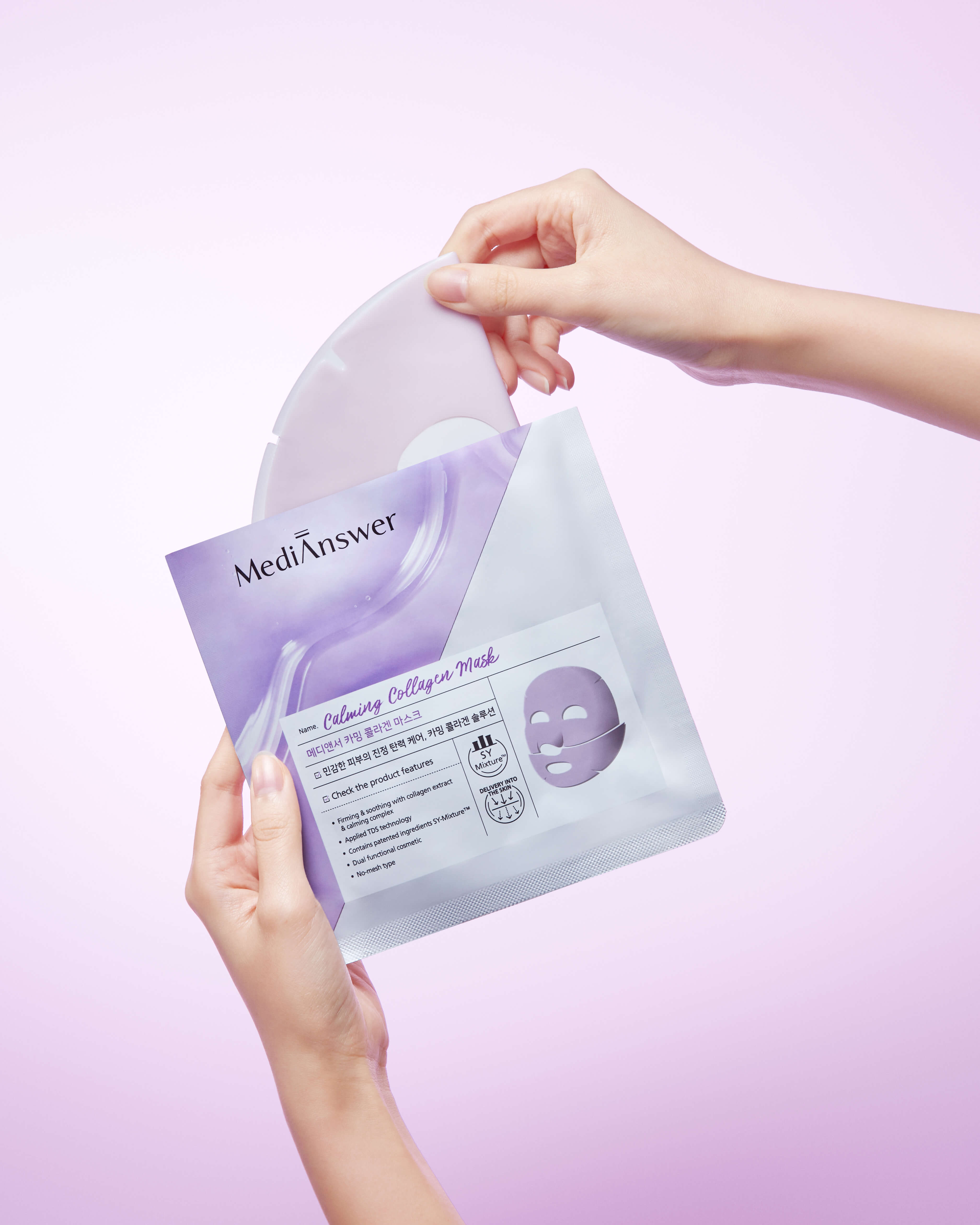 MediAnswer Calming Collagen Mask is a gentle yet effective treatment for sensitive skin that needs both soothing and firming care. Powered by MediAnswer’s patented TDS technology, it delivers ultra-fine 500Da French collagen to deeply support skin elasticity.