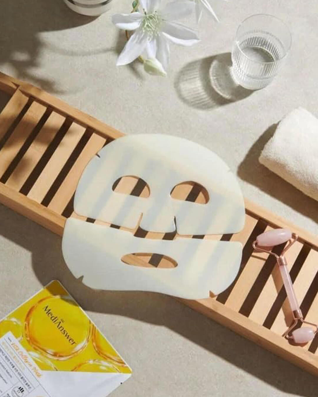 Texture: Gel-like sheet made with skincare ingredients only that turns transparent post treatment