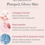 The Medicube Collagen Night Wrapping Mask deeply hydrates and firms the skin using a blend of Collagen Extract, Hyaluronic Acid, and Ceramide NP, while Niacinamide brightens and smooths uneven tone.