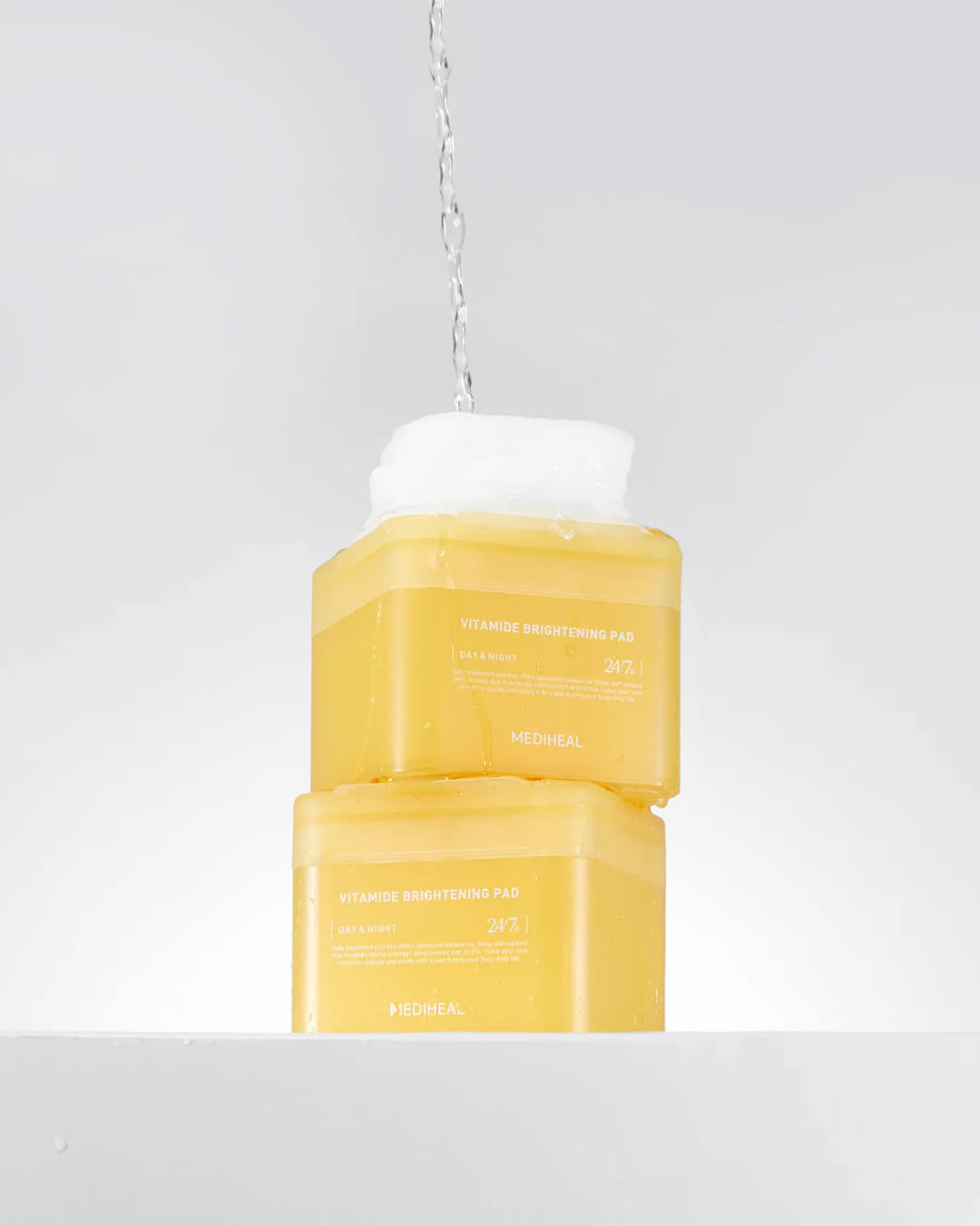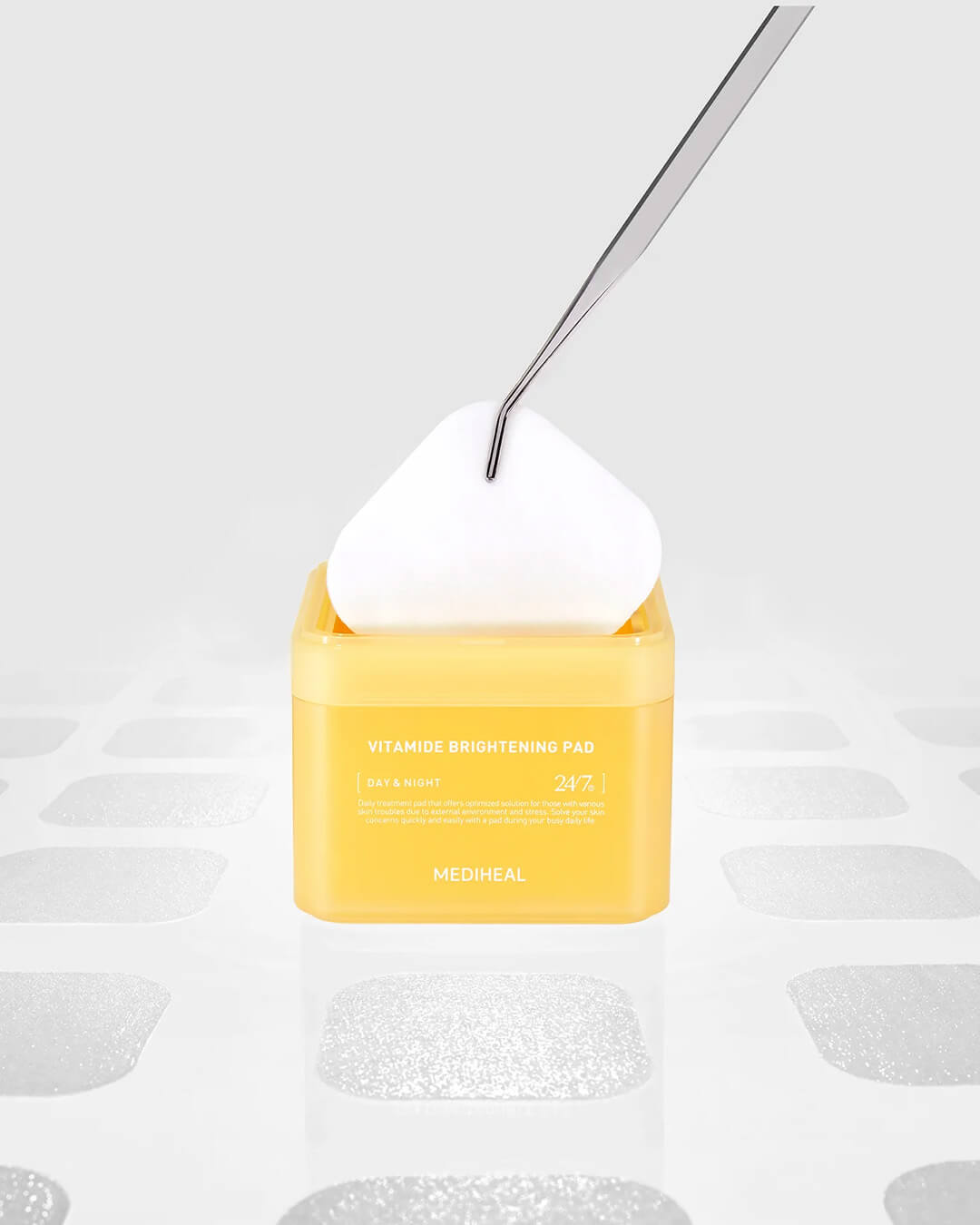 - SQUARE PADS: Made of 100% plant-based pad without dyes that can be stretched for your best fit, Mediheal’s Vitamide Brightening Pad is ideal as a daily brightening toner as well as a 15-minute intensive anti-aging treatment. The rounded corners and stretchability ensure a comfortable and perfect fit on the forehead, nose, and cheeks. Included tweezer keeps all 100 pads free from external contaminants.