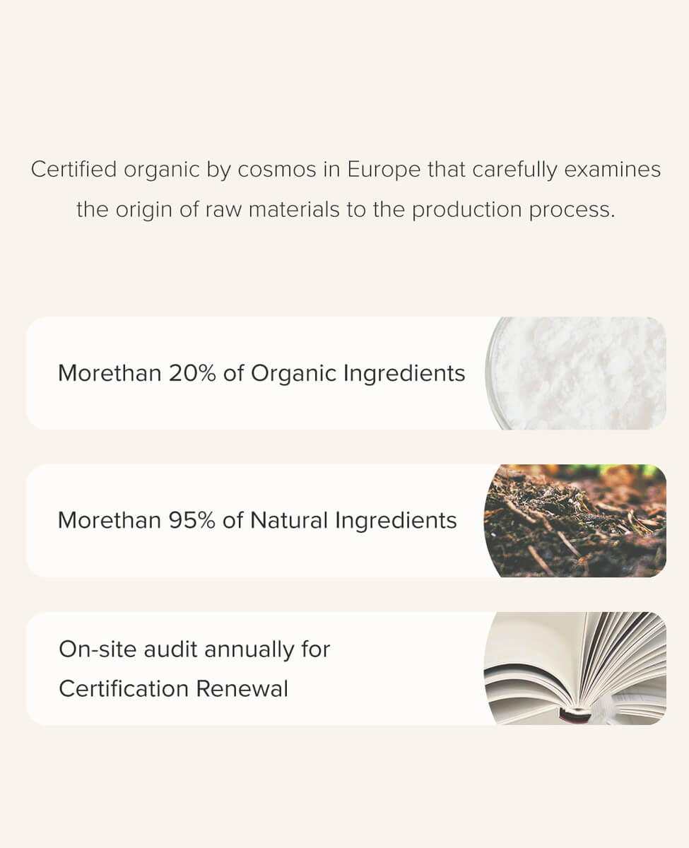 Scent-free, silicone-free and quick to absorb, this cream contains over 20% organic ingredients (certified by EU COSMOS) and over 95% naturally-derived ingredients, making it gentle enough for extra sensitive skin. GMO-free and produced in an environment-friendly facility. Certified vegan by the UK Vegan society and certified by Canada's Cert Clean.