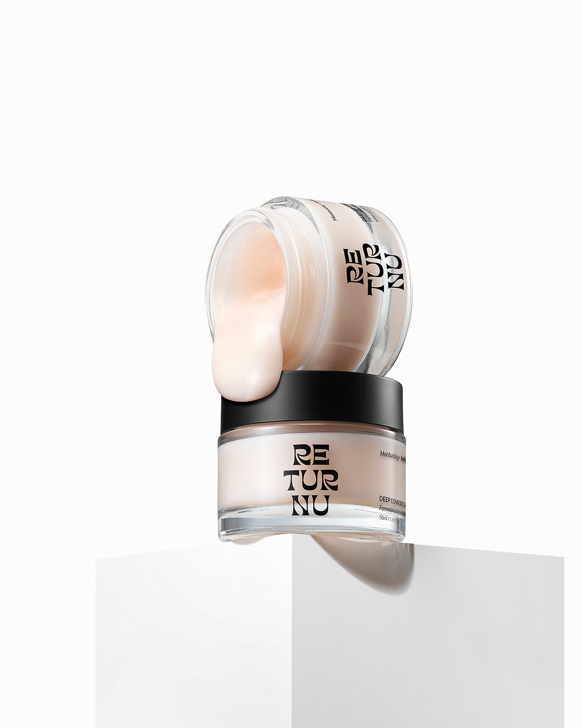 The Returnu Deep Comfort Cream is a fast-absorbing, intensely hydrating moisturizer that strengthens the skin’s moisture barrier. Formulated with 68.8% birch tree extract, 5% panthenol, and vegan ceramides, it delivers long-lasting hydration without stickiness.