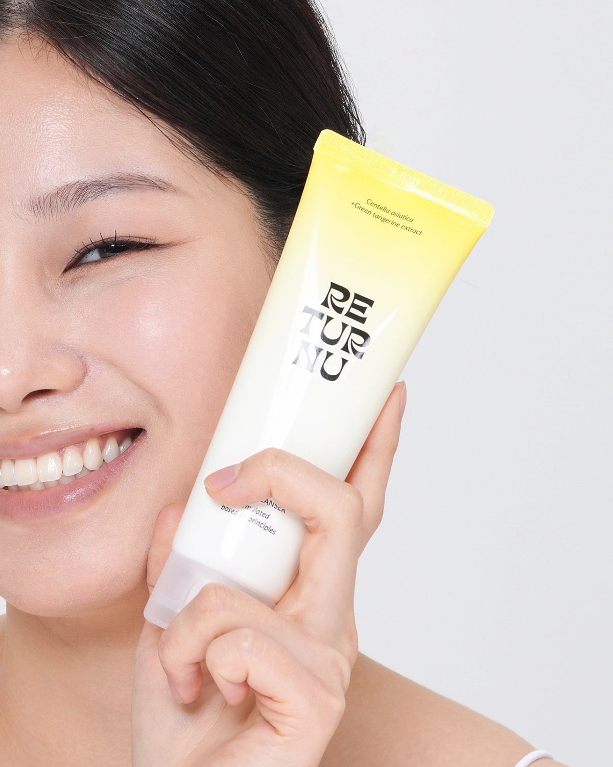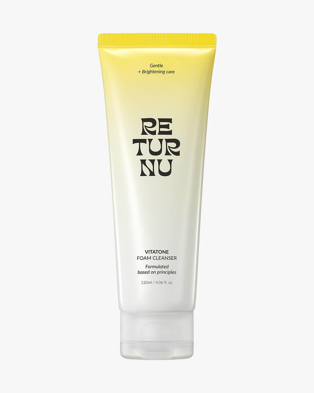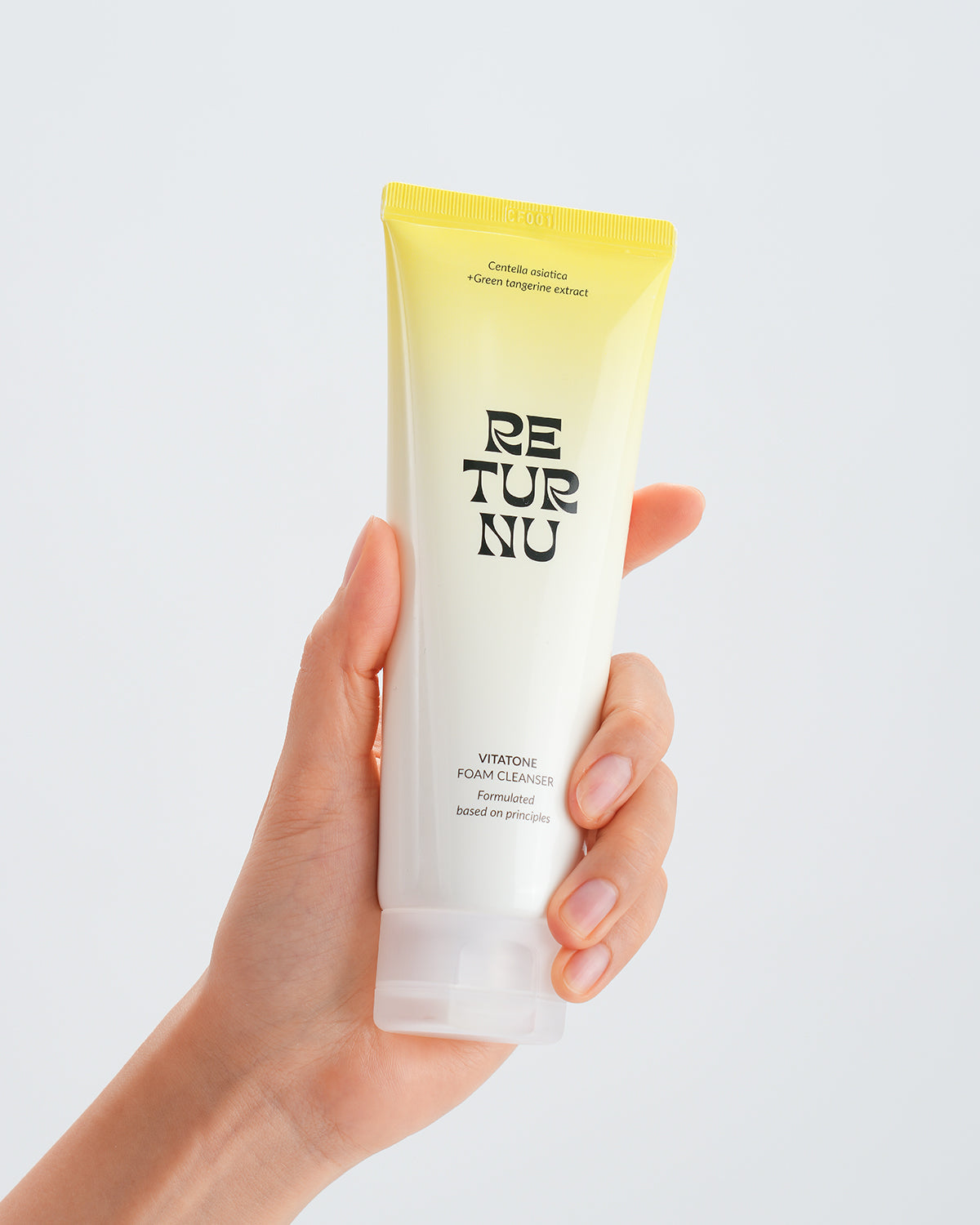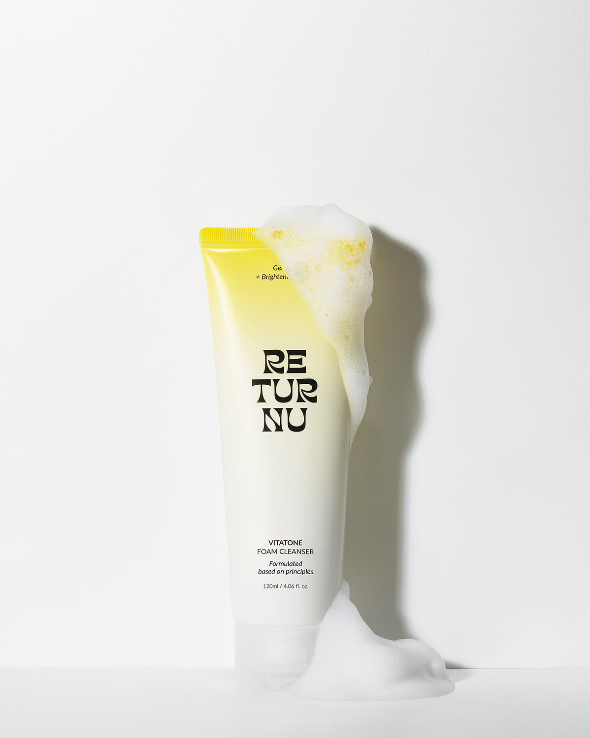 The Returnu Vitatone Foam Cleanser is a low pH, brightening face wash infused with Jeju green tangerine and vitamin C. Its rich, cushiony foam gently removes impurities while keeping skin hydrated, smooth, and radiant.
