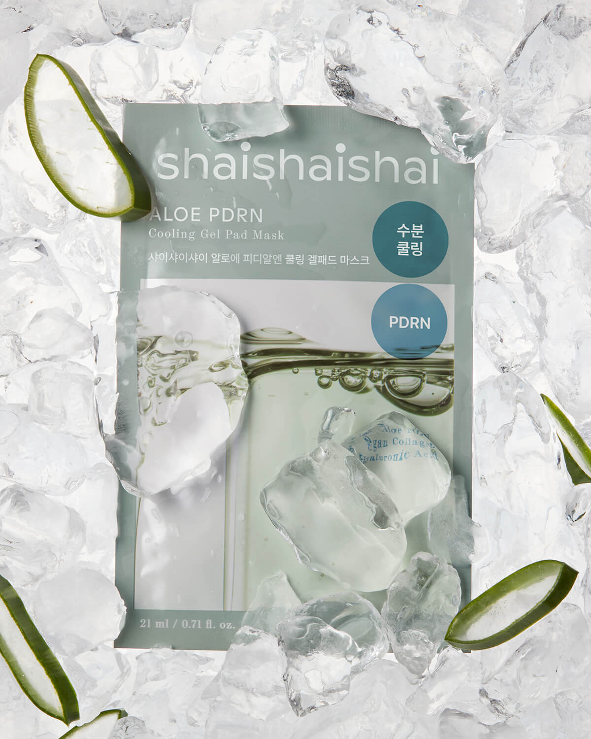 The shaishaishai Aloe PDRN Cooling Gel Pad Mask delivers refreshing hydration and instant soothing for heat-stressed, sensitive skin. Powered by Jeju aloe, vegan collagen, and a 10-hyaluronic acid complex, it calms, plumps, and protects.