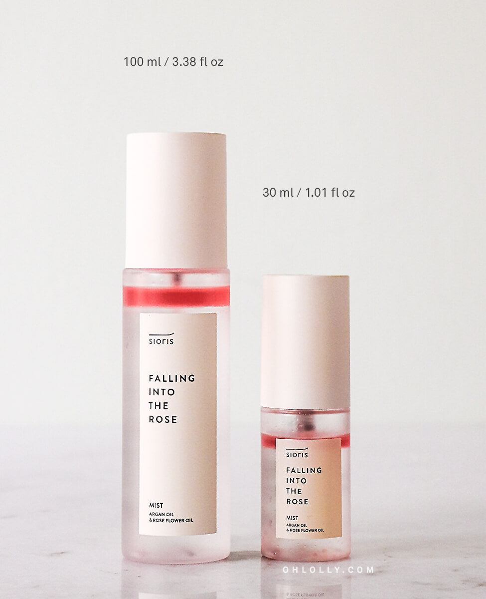 Compared to Sioris' Time Is Running Out Mist with a 10% oil layer, the Falling Into Rose Mist has a 5% oil layer making it great for both sensitive and oily skin.