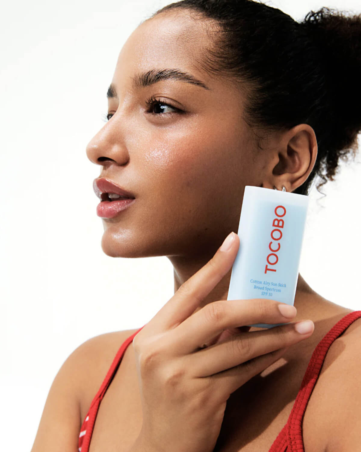 The Tocobo Cotton Airy Sun Stick is ideal for SPF reapplication. With its smooth, weightless texture and matte finish, it glides on invisibly—no white cast, no greasiness. It’s formulated with oil-controlling ingredients and hydrating ingredients to keep skin balanced and fresh throughout the day. Great under or over makeup, this vegan sunscreen stick makes UV protection effortless, mess-free, and comfortable.