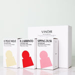 Vinoir’s Decanting Soap Series Gift Set includes the Cleansing Bar, Shower Bar, and Shampoo Bar from Vinoir’s Decanting line, featuring three distinctive spa-worthy scents.